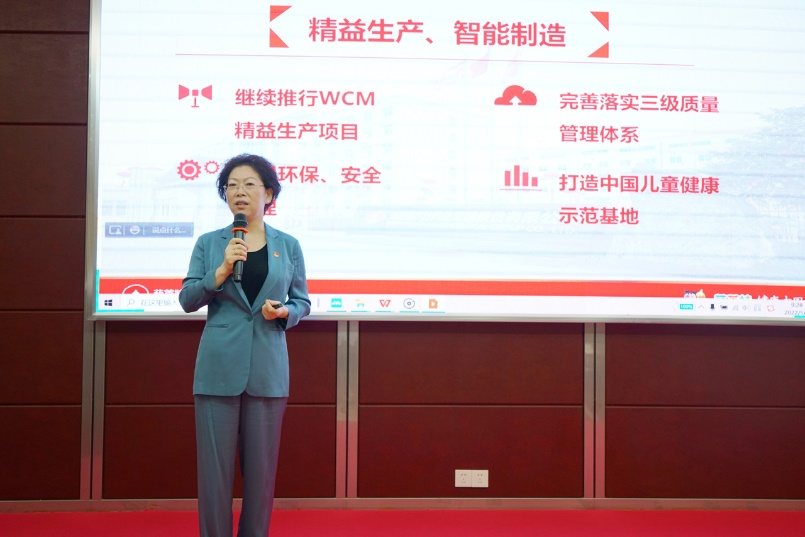 作为海南省第八次党代会代表,刘景萍董事长在参加完省第八次党代会后,提出918博天堂药业集团要坚持“党建引领企业发展”,在一季度总结表彰会上以“蓝图绘就,指引未来——打造中国儿童健康领军企业”为主题讲话。